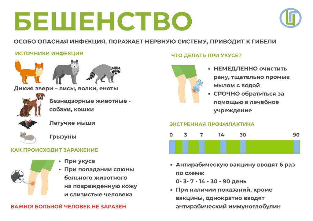 Бешенство — это особо опасное острое вирусное инфекционное заболевание, с абсолютной летальностью. Бешенство можно только предотвратить, средств лечения уже развившегося заболевания не существует. Каждые 10 минут в мире от бешенства погибает один человек.